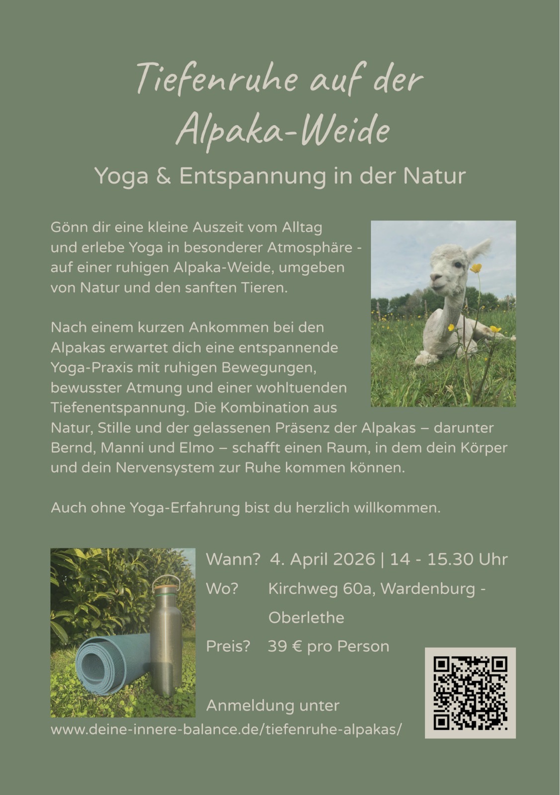Gerne laden wir Sie ein, sich auf unsere Website über die faszinierenden Tiere zu informieren. Entfliehen Sie dem stressigen Alltag und tauchen Sie mit unseren Alpakas in deren Welt ein.